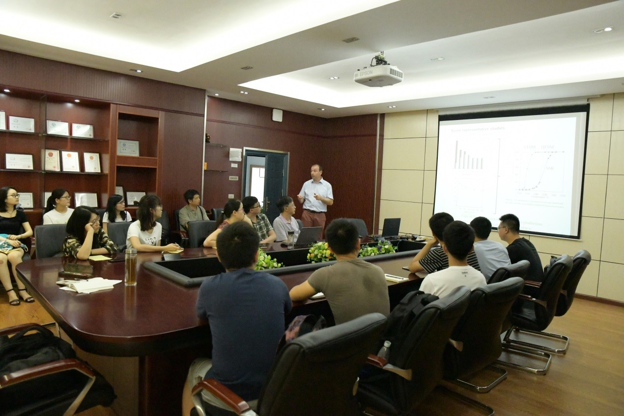 在学院期间,Royer教授分别于6月25日,7月2日及7月5日作了三场内容丰富的学术报告,其报告题目分别为“Synthesis of mesoporous silica supported transition metal NPs”、“Perovskites in environmental catalysis”和“Writing of an article”。在前两场报告中,Royer教授基于其法国实验室在催化材料方面的学术积累,分别详细讲解了不同制备条件下负载型介孔材料(以SBA15为例)的物化性质及催化性能差异;金属氧化物类(以钙钛矿为例)催化剂的合成与表征及其在环境领域的应用。第三场报告中,Royer教授就研究生期间如何写作学术论文给出了详尽的建议与指导,并与现场的同学们进行了讨论和交流。