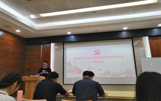 地理科学与国土资源系研究生第五党支部组建后第一次支部大会在电脑城429会议室举行。会议由支部代理书记程鹏同志主持,院党委副书记雷起宏书记,研究生辅导员李韩老师出席本次会议。