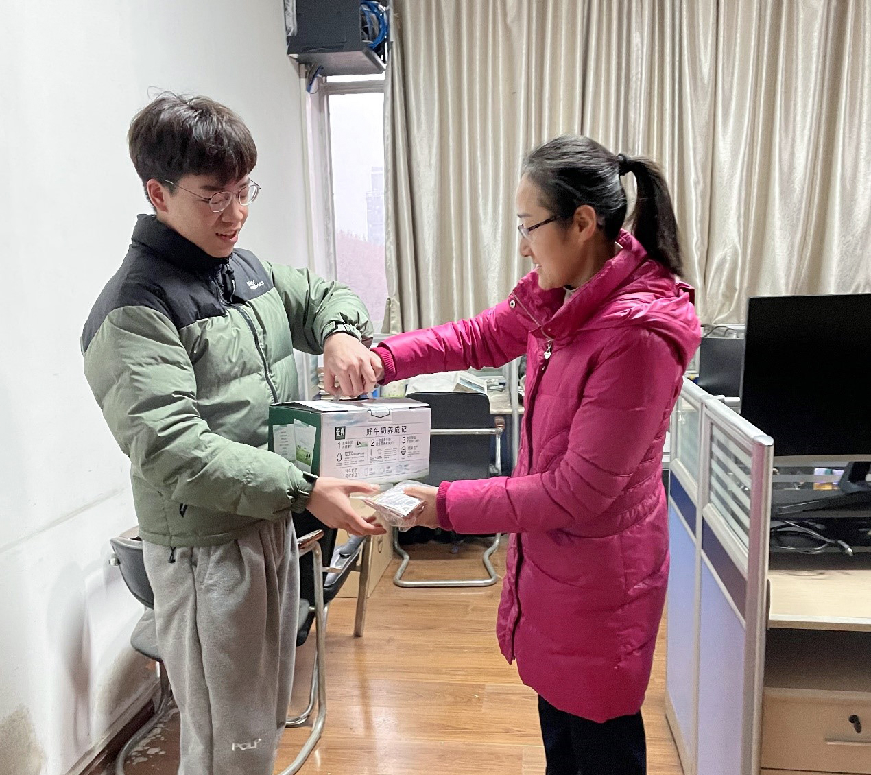 两位老师给同学们送上新春的问候,带去牛奶和暖宝宝,在大雪纷飞之前传递学院对学子的新春关爱。澳门威尼斯人官网
