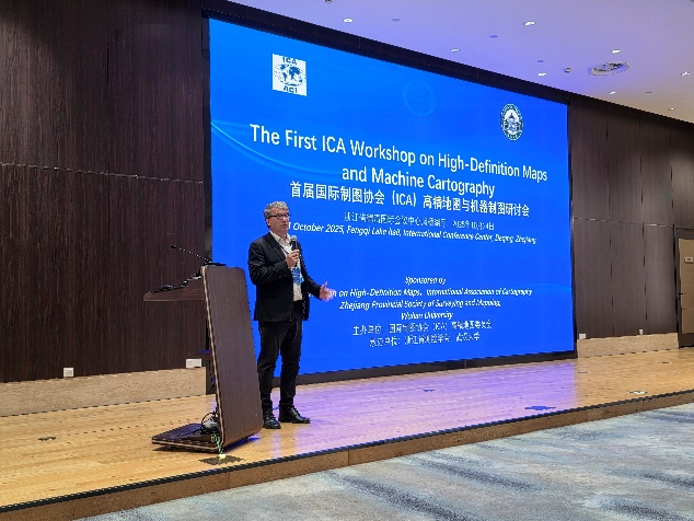 2025年10月24日,由国际制图协会高精地图委员会主办,浙江省测绘学会、武汉大学承办的首届ICA高精地图与机器地图学学术讨论会在浙江省德清市国际会议中心成功召开,国际制图协会Georg Gartner主席、黄浩生和刘纪平副主席莅临研讨会,高精地图委员会主席、武汉大学杜清运教授和副主席、谷歌公司的戴晶博士主持了研讨会,共有来自世界各地的七十多位与会者参加了为期一天研讨会。