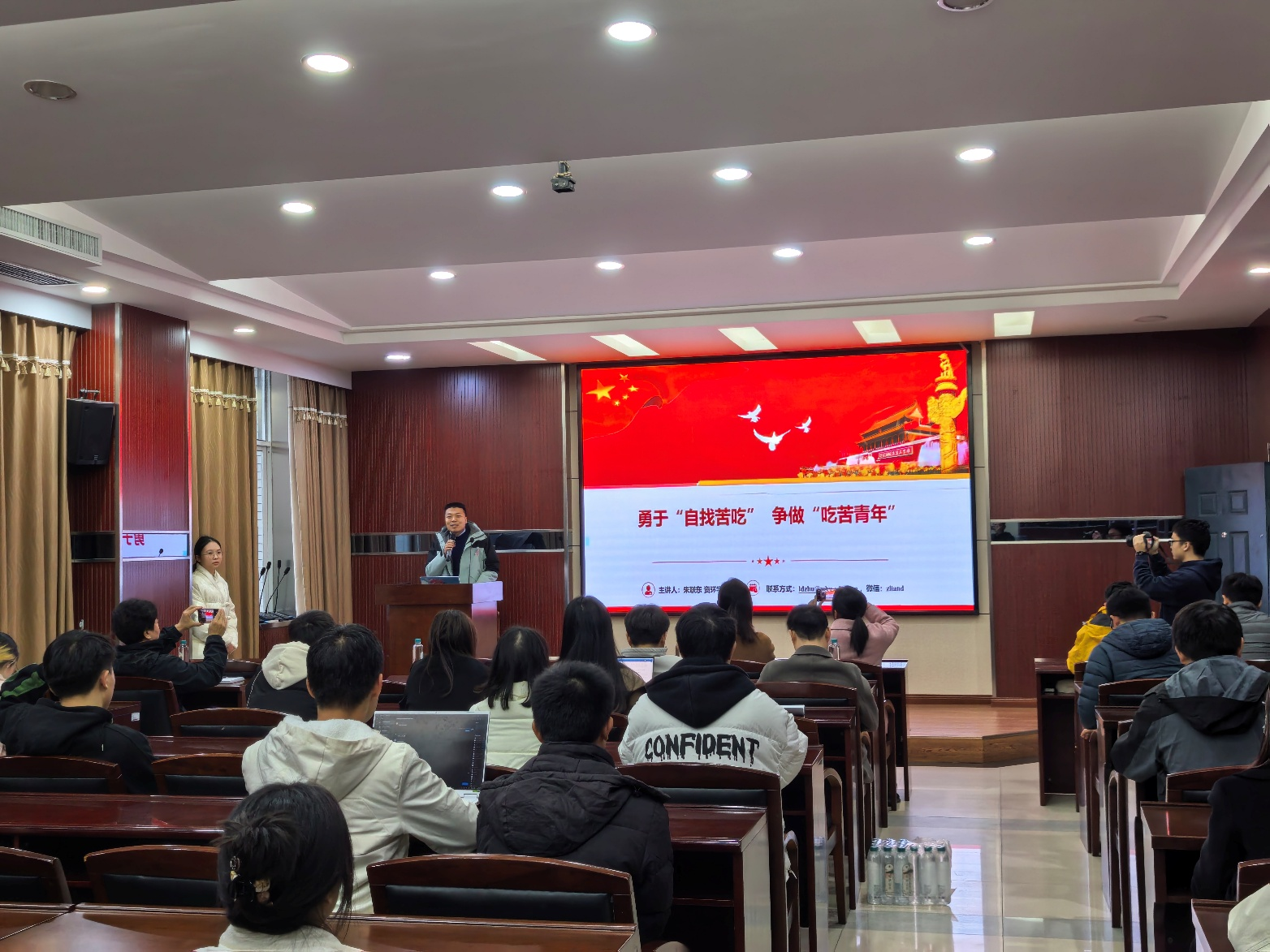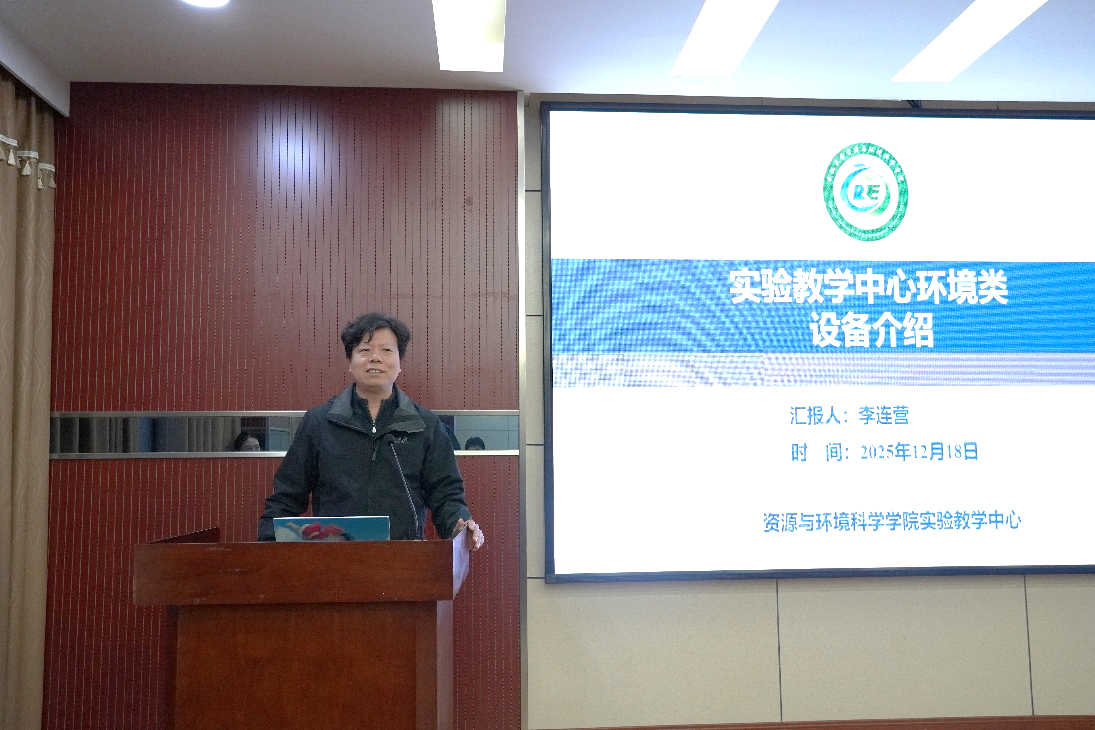 随后,学院实验中心主任李连营老师围绕“在科研中学会‘科学吃苦’”做平台资源介绍。他从“攻坚须有器,吃苦须得法”的角度切入,强调青年学子既要有“自找苦吃”的精神,也应具备善用资源、提升效率的智慧。李老师简要介绍了实验中心作为学院公共实验平台,覆盖环境分析、地理信息、虚拟仿真等多个功能板块,并通过规范化、信息化的管理机制面向全院师生开放共享。他重点说明了设备预约流程、使用规范与安全管理要求,并提醒同学们:“科研中的‘苦’,应当苦在攻克真问题、突破卡点上,而不是苦在重复劳动、信息不畅或设备不足上。希望同学们主动了解平台资源,用好公共支撑,减少因信息隔阂或条件制约造成的‘无效吃苦’,真正把时间和精力聚焦在创新突破上,让每一次‘苦’都转化为实实在在的科研进展。”