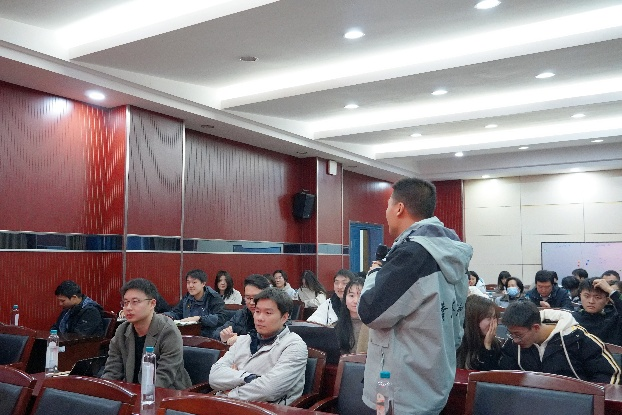 在师生交流环节,与会师生围绕“吃苦精神的时代践行”与“实验资源高效利用”等话题展开热烈讨论。支部同学结合自身发展困惑,提出“应当为读博深造吃苦,还是为投身工作吃苦”的现实问题。朱联东老师回应指出,两种选择都离不开吃苦奋斗,关键是要结合个人志趣、能力特质与国家需要,做出契合自身长远发展的理性抉择,“吃苦不是目的,成长才是最终目的”。尹恩强老师则从科研支持角度表示,实验中心将持续优化服务,为同学们使用仪器、开展实验提供便利与指导,助力大家把“苦”吃在关键处、做出真实效。现场交流深入、氛围活跃,展现出师生之间思想碰撞、教学相长的良好风貌。