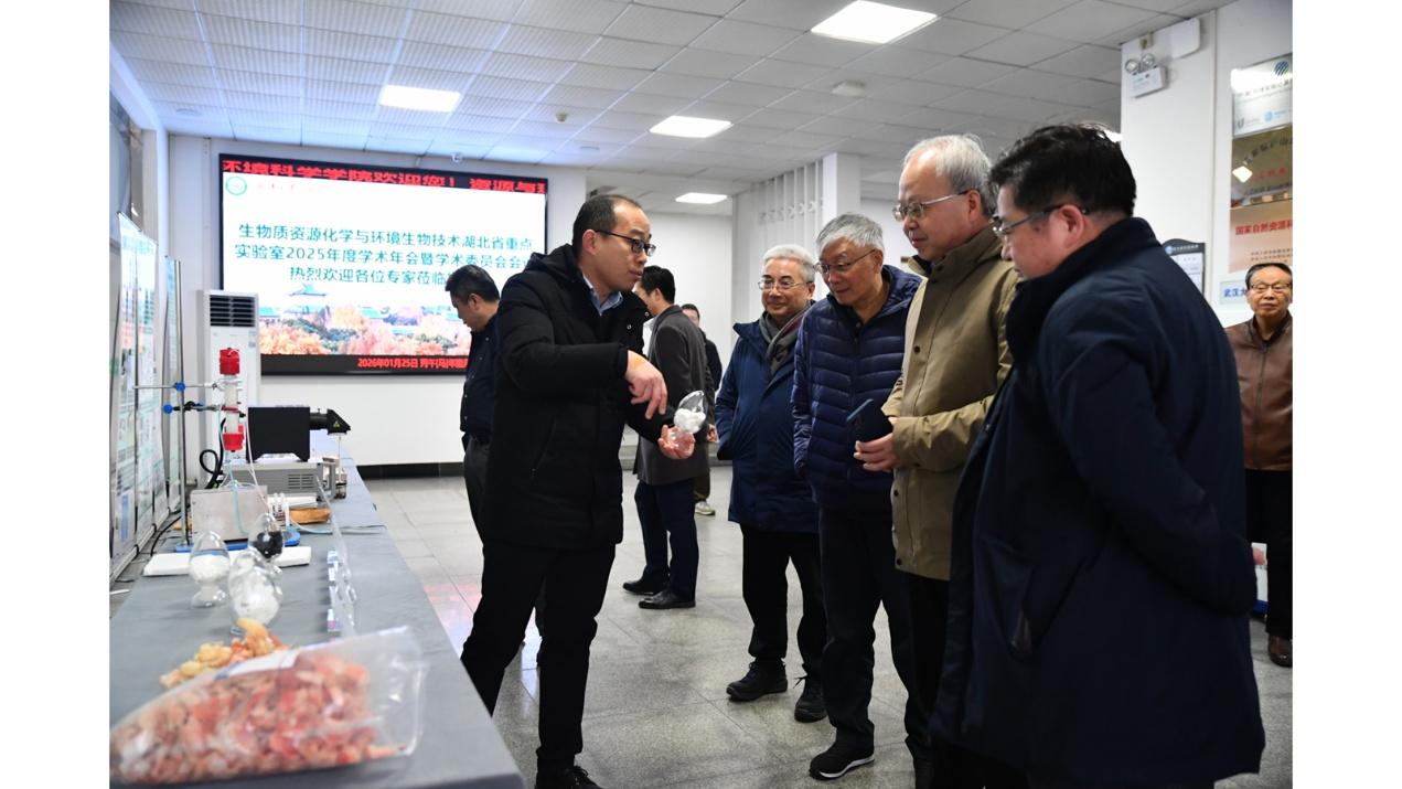 在专题汇报后,重点实验室主任邓红兵教授代表实验室向学术委员会系统汇报了2025年度建设与科研工作总体情况。汇报围绕实验室研究布局、科研进展、平台与团队建设以及成果转化等方面展开。实验室自2006年成立以来,立足湖北高质量发展重大需求、区域特色资源小龙虾产业和美丽湖北建设目标,围绕生物质转化与环境友好材料构建、废弃塑料选择性降解与资源化利用、生物质基功能材料及能源化利用、固体废弃物循环利用、环境健康与环境修复技术等方向,系统推进基础与应用研究协同发展,在服务湖北特色生物质资源利用(如甲壳素/壳聚糖高值化应用)和新污染物控制等方面形成了一批标志性研究成果,部分关键技术已经或正在向工程化和产业化延伸,在生物质资源高效利用与环境生物技术领域逐步形成了特色鲜明、优势突出的研究方向。
