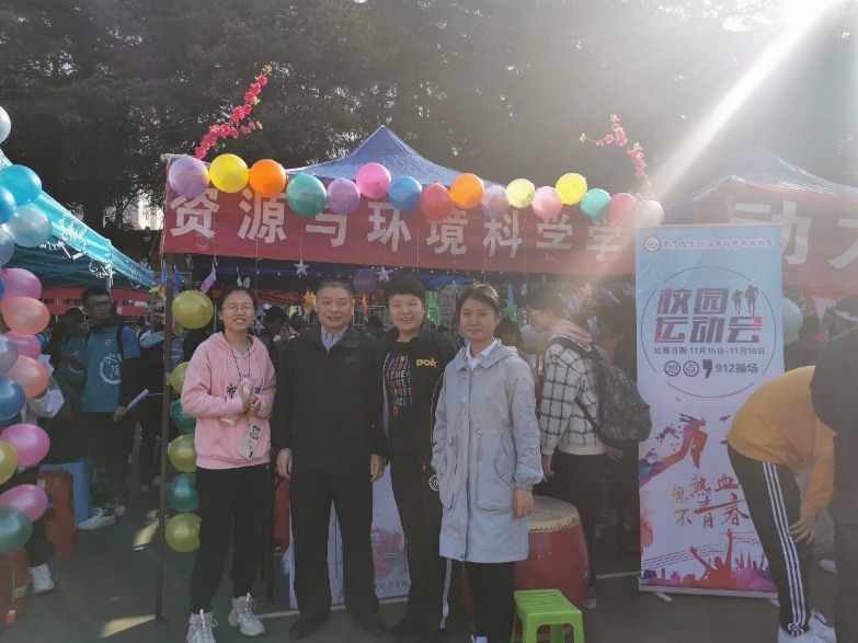 党委书记刘兴国老师,党委副书记冯丹老师出席了开幕式。伴随着激昂的《运动员进行曲》,各院系的运动员依次入场。常言道:“好饭不怕晚,叙话不怕慢”,压轴出场的资环方阵不负众望,整齐的步伐,有力的摆臂,响亮的口号……无不体现着资环学子昂扬向上的精神面貌。在“腾蛟起凤,放马金鞍”的口号之后,一把把黄色或绿色的伞同时打开。一个大大的“RE”(Resource and Environmental Sciences),彰显了资环的风采。