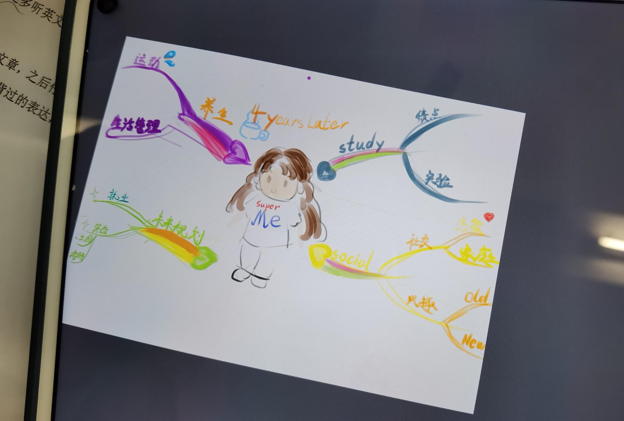 最后,在“牛刀小试”环节,同学们以“自我介绍”或“四年后的自我介绍”为话题,在二十五分钟的时间限制内绘制了自己的思维导图并进行展示,亲自动手实践,运用所学知识,更好地理解了思维导图。